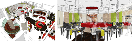 Stuff International Design Ltd was asked to pitch for the redesign of the Fire Station in Tooley Street into a bar and restaurant. At the start of the recession, our aim was to create a bright, vibrant and uplifting experience to counterbalance the austere economic climate. We also orientated the space to position Simon Boyle centrally so that he could perform his unique food creation demonstrations.