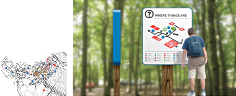 We also designed an effective way-finding solution, with a colour coding system to guide visitors to the different types of facilities.