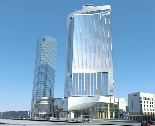 The aim was to create an iconic building that would be a new focus in this growing city. The plan for this complex building blends and mixes the commercial office space with residential, leisure, retail and hotel use. We had to comply with traffic requirements for the city and also planned the parking for both the commercial and retail elements.