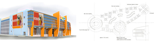 Stuff International Design Ltd was appointed by Strela as architectural advisers to develop a shopping centre in Chelyabinsk. We redesigned it to become a family destination centre, with various retail outlets, a food court, play areas and a large supermarket, totalling 17,260 square metres over two floors. ‘Molniya’ (food hypermarket) is the main tenant on the ground floor.