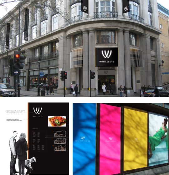 Whiteley’s was London’s first department store and its iconic building is located on Queensway in Bayswater, central London.  While it was highly successful for many years, the store closed in 1981 and was bought by Standard Life Assurance and rebuilt internally.  At the height of its popularity it received over 8 million visitors a year, however, customer numbers started to decline as it began to look tired and with the competition of the Westfield Shopping Centre’s opening in Shepherd’s Bush.  Stuff International Design was brought in by Standard Life in 2008 to develop a new positioning for Whiteley’s.